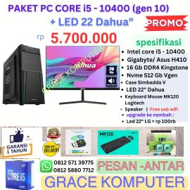Paket PC core i5 10400 (gen10) | Ram 16gb | Led 22″ Dahua