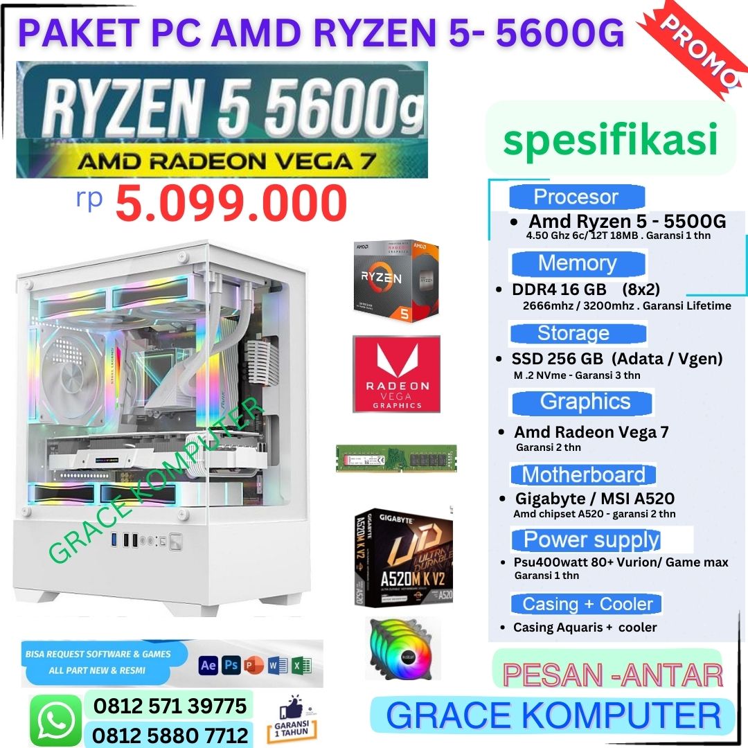 Paket pc 23 : Amd ryzen 5 – 5600G + Amd Radeon Vega 7 | DDR4 16 gb